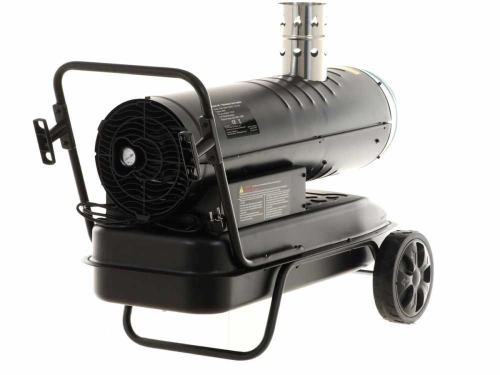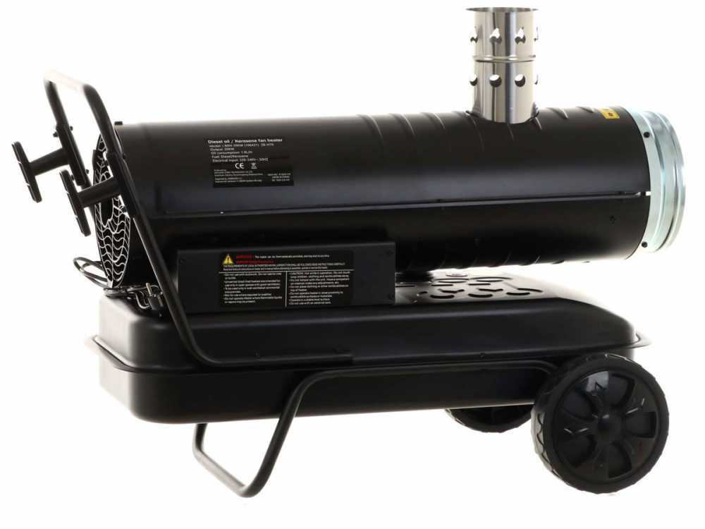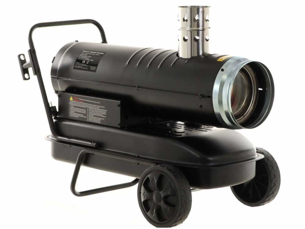 Das Diesel-Heizgerät BlackStone i-BDH 20kW ist ein leistungsstarkes dieselbetriebenes Gerät mit Indirektheizung und Abgaskaminrohr. Mit dem Abgasrohr werden die Abgase von der produzierten Warmluft getrennt. Das Gerät produziert dank seiner 20kW Wärmeleistung einen hohen Luftstrom von 750m³/h. Der Wärmegenerator ist mit einem regulierbaren Thermostat ausgestattet, der nach Wunsch eingestellt werden kann. Fahrgestell und Tragegriff gehört zur Serienausstattung.