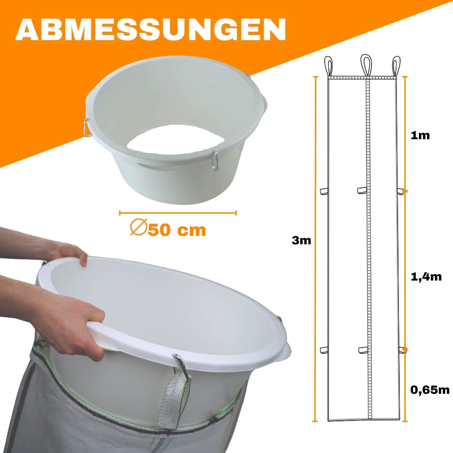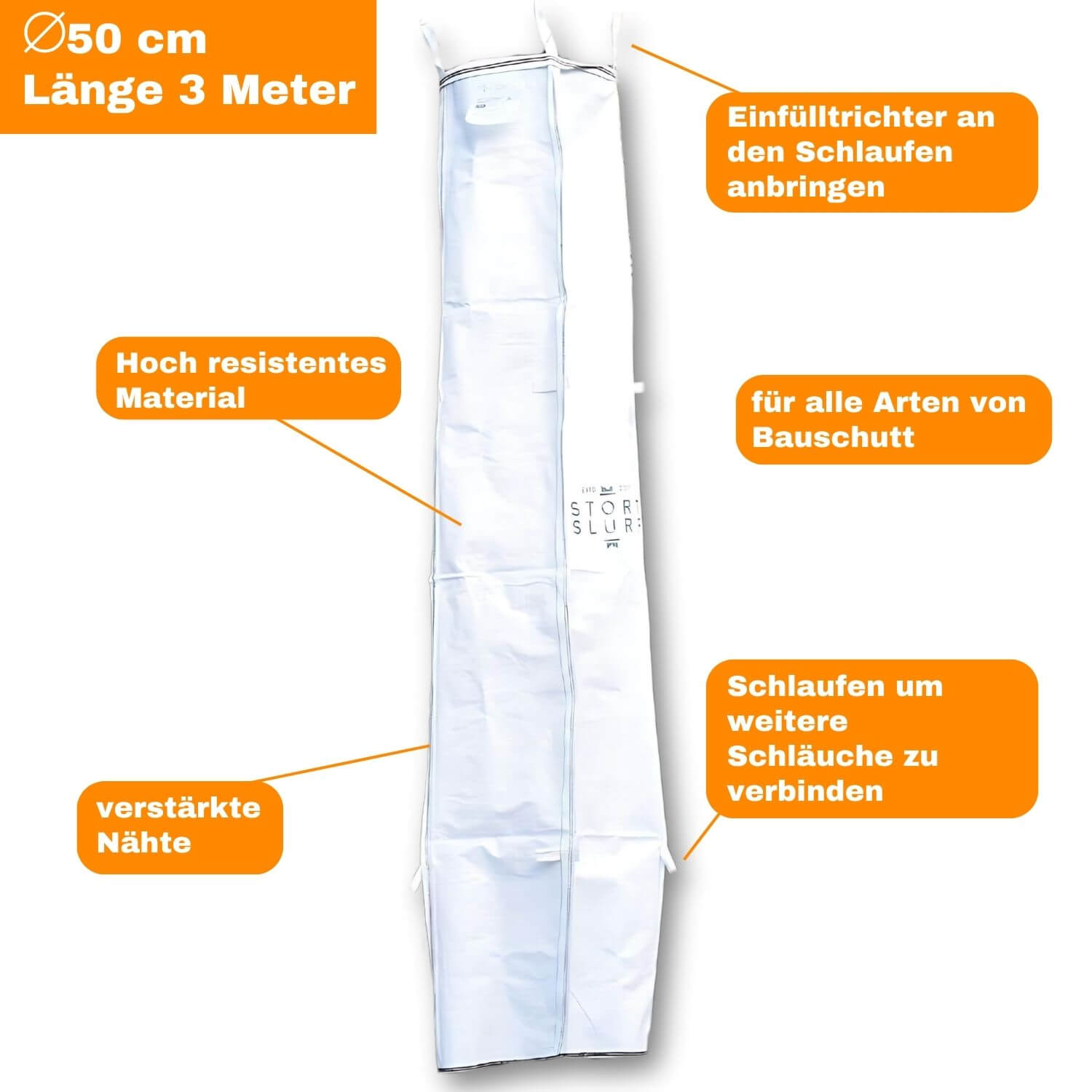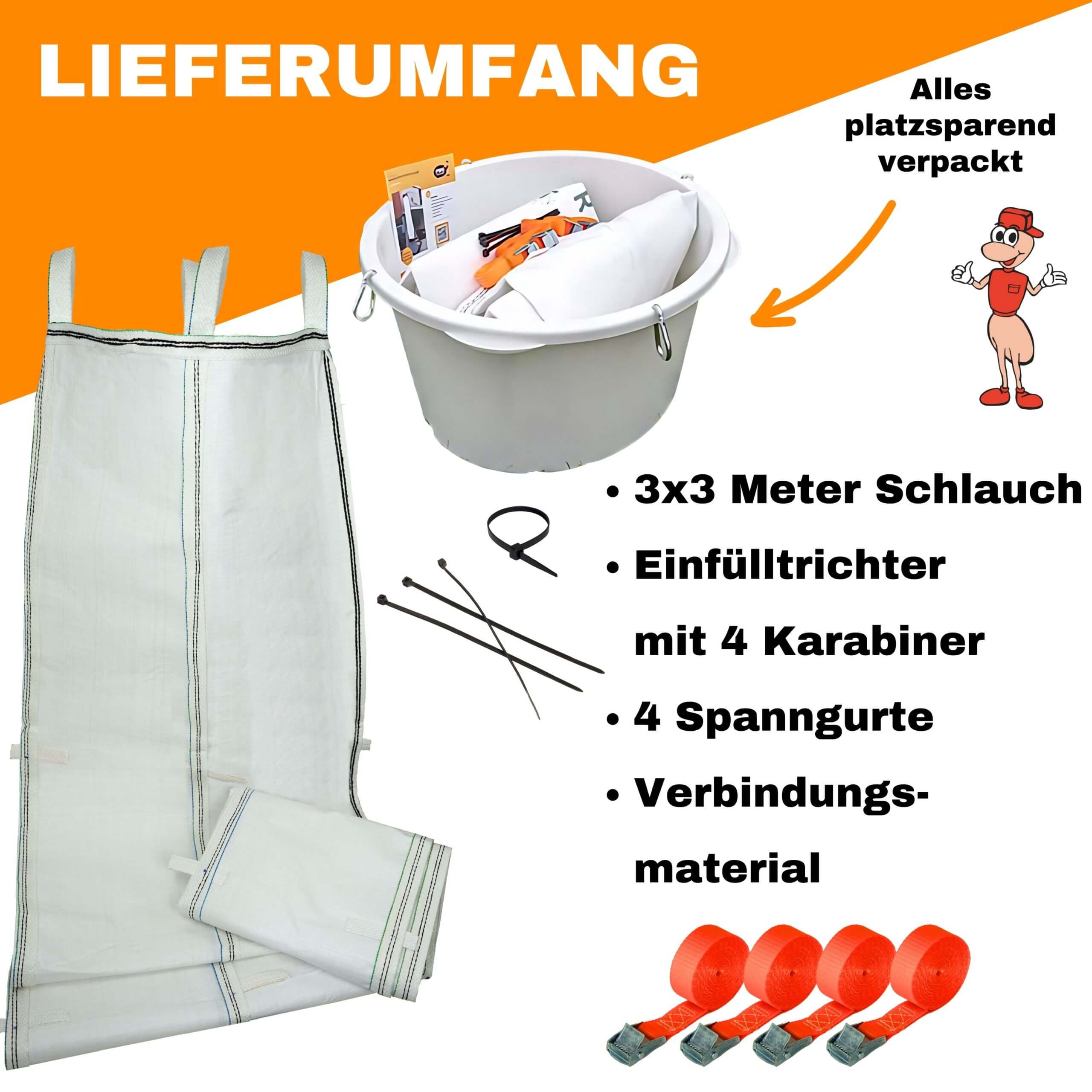 • 3x Schuttschlauch: L x Ø = 3m x Ø 50cm