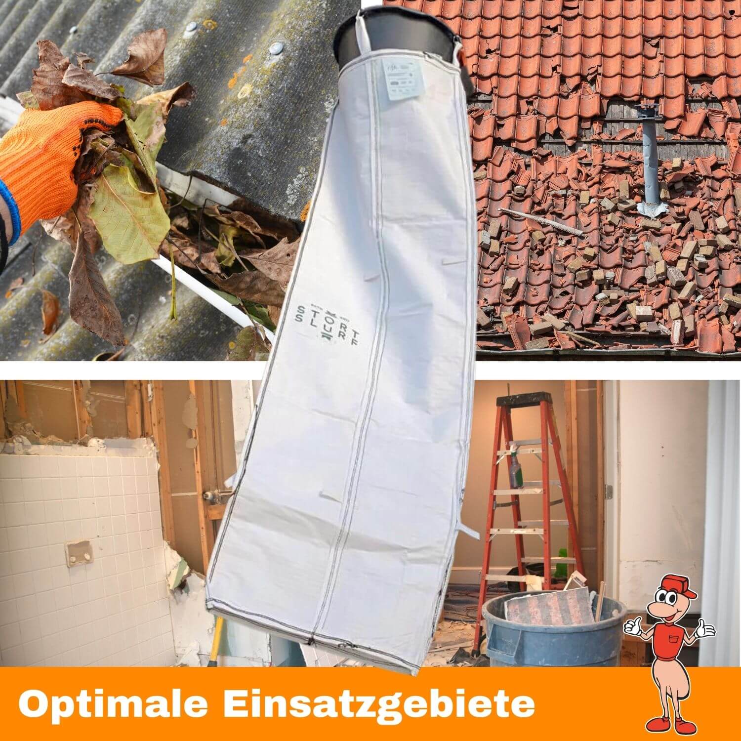 Das Stortslurf® 9-Meter-Set ist die richtige Wahl für Gebäude mit drei Stockwerken – ideal für umfangreichere Renovierungen, Dachsanierungen oder Abbrucharbeiten, bei denen größere Mengen Bauschutt schnell und sicher nach unten befördert werden müssen. Lärm und Staub werden dabei deutlich reduziert.