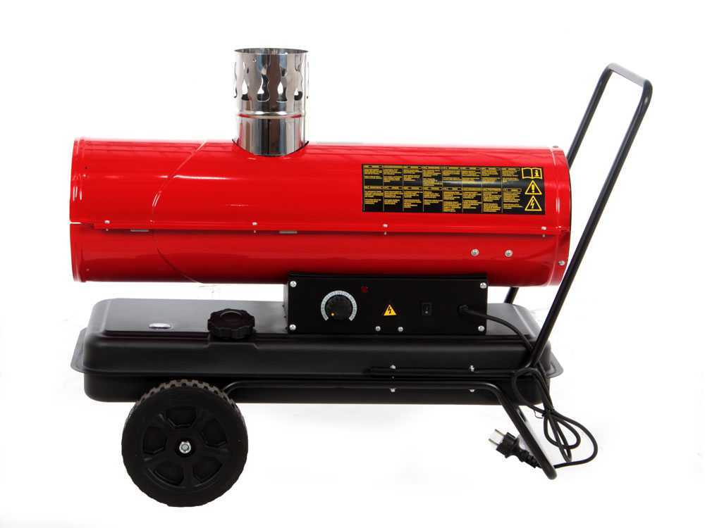 Das Diesel-Heizgerät GeoTech IDH 2000 ist ein leistungsstarkes dieselbetriebenes Gerät mit Indirektheizung und Abgaskaminrohr. Mit dem Abgasrohr werden die Abgase von der produzierten Warmluft getrennt. Das Gerät produziert dank seiner 20kW Wärmeleistung einen hohen Luftstrom von 600m³/h. Der Wärmegenerator ist mit einem regulierbaren Thermostat ausgestattet, der nach Wunsch eingestellt werden kann. Fahrgestell und Tragegriff gehört zur Serienausstattung. Mit dem mitgelieferten Warmluftschlauch, kann die Wärme super gesteuert werden.