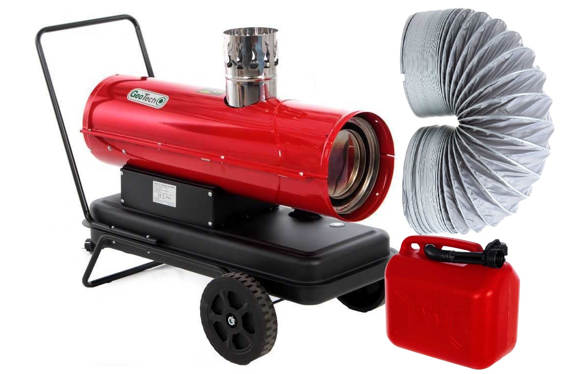 GeoTech Dieselheizer IDH 2000 – 20kW Heizkanone indirekt Heizgebläse inkl. passenden Warmluftschlauch 5m und einem Kraftstoffkanister 10l